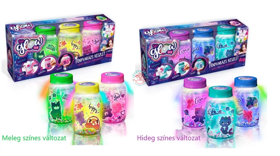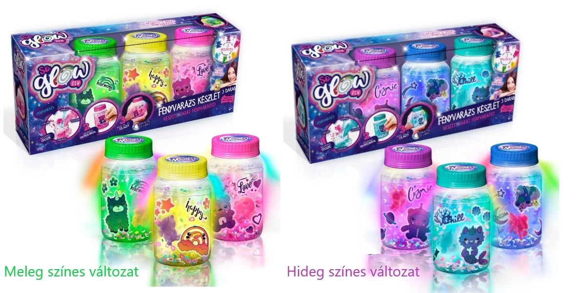 A Fényvarázs készletben 3 db különböző színű üvegcse található. Két változatban, hideg- és meleg színek készletben kaphatók. A megrendelés folyamán jelezd felénk melyik változatot szeretnéd megkapni.