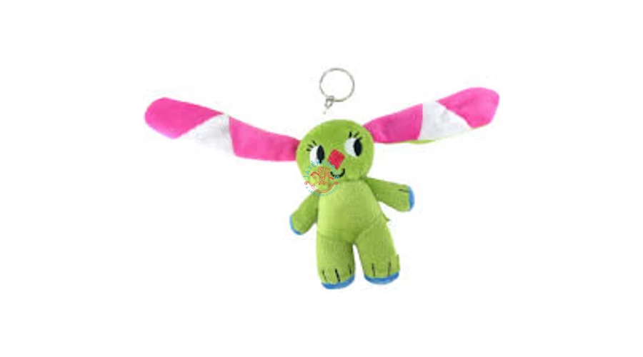 A Kockásfülű nyúl álló kulcstartó plüssfigura a zöld nyuszit testesíti meg, puha plüssből.