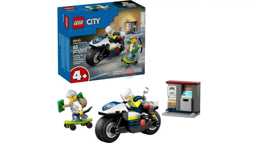 A gyerekek belebújhatnak egy bátor LEGO City rendőr szerepébe, aki motorján üldözőbe veszi a szökevényt, hogy megállítsa a városban dúló káoszt. A készlet tartalmaz egy gyors rendőrségi motorkerékpárt, egy vagány tolvaj járművet, valamint két minifigurát, akik segítségével életre kelthetők a legmerészebb üldözések. A realisztikus részletek, mint a bilincs, pénzeszsák és közlekedési bója, még valóságosabbá teszik a játékélményt.