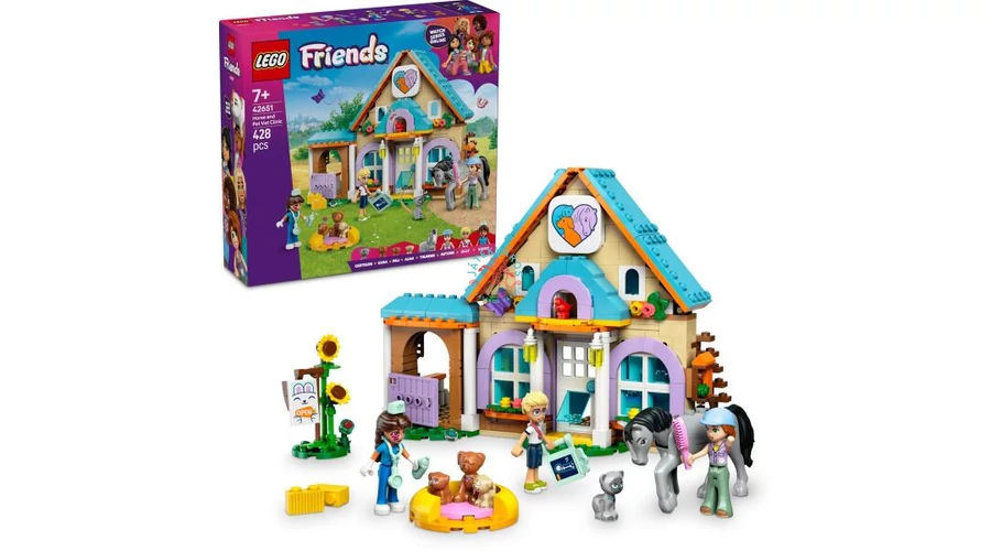 A készlet tartalmaz lovakat, állatgondozási eszközöket és egy teljesen felszerelt vizsgálótermet, ahol a gyerekek megvizsgálhatják, ápolhatják és meggyógyíthatják a beteg vagy sérült állatokat. A játék fejleszti az empátiát, a kreativitást és a szerepjátékot, miközben színes építési élményt nyújt.