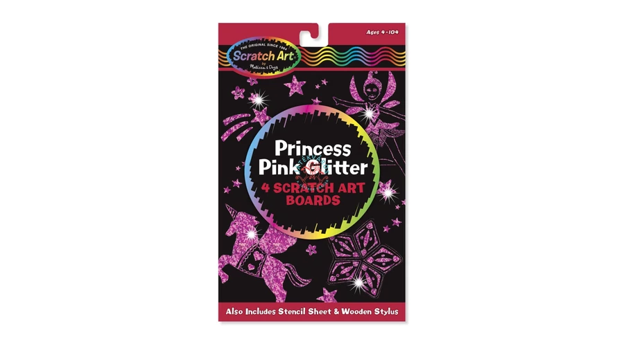 A készlethez tartozik egy hercegnős sablon is, amivel számtalan alakzatot, figurát, így többek között unikornist, hercegnőt, csodálatos csillagokat tudsz papírlapodra karcolni, alatta pedig lilásan csillogó csodás szín jelenik meg.