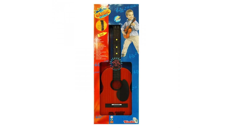 Gitár fém húrokkal, 8-féle demo dallam. A gitár nyakán lévő gombokkal váltogathatjuk a demo dallamokat és az előreprogramozott ritmus és zenei alap dallamokat . A gitár automatikusan kikapcsol, ha egy ideig nem játszanak rajta. Igényesen kidolgozott hangszer,mely sok gyerek álma.Demo elemeket a csomagolás tartalmaz.Mérete: 54 cm